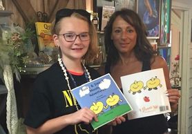 Pictured with Addison, the co-illustrator of the first edition of Bucky & Daisy's children's book.